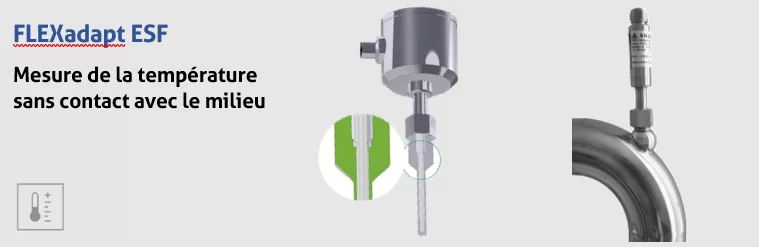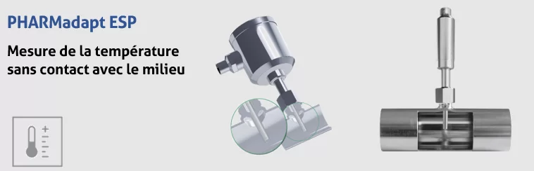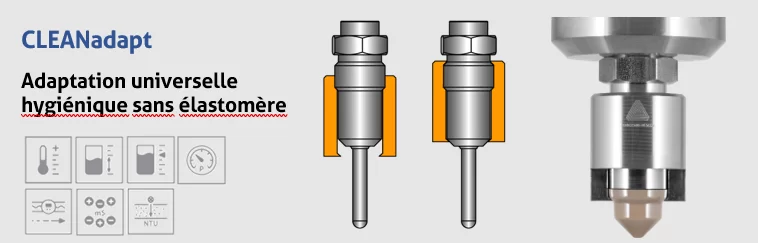 Un capteur ne peut fonctionner de manière efficace et fiable qu'avec un raccord de processus hygiénique supérieur. Installation du capteur sans zone morte, à fleur, doigts de gant pour mesure sans contact avec le fluide, systèmes de montage des séries CLEANadapt et PHARMadapt...